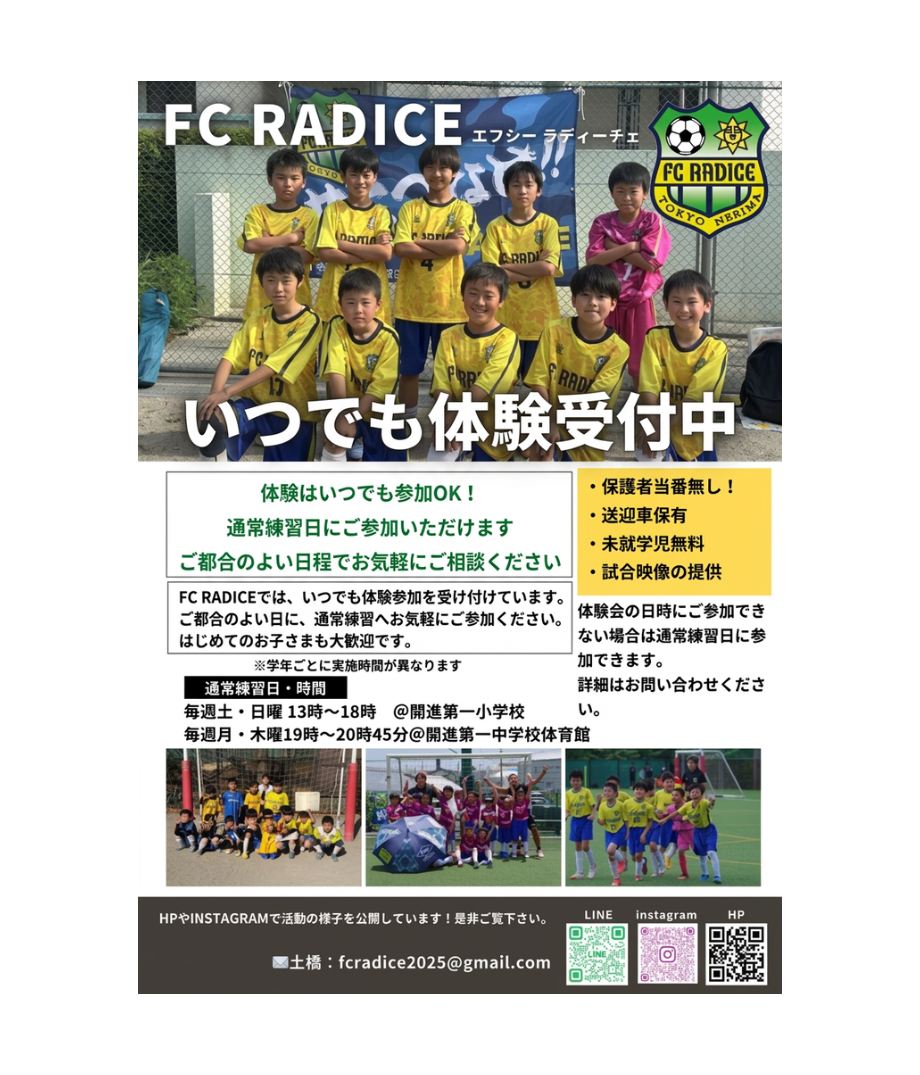 東京都練馬区のサッカーチームFC RADICE(ラディーチェ)の公式ホームページです。